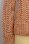 Three sets of cables at the centre front and back are placed on hold during neck shaping and continued into the collar interspersed by sections of 2x2 rib.
