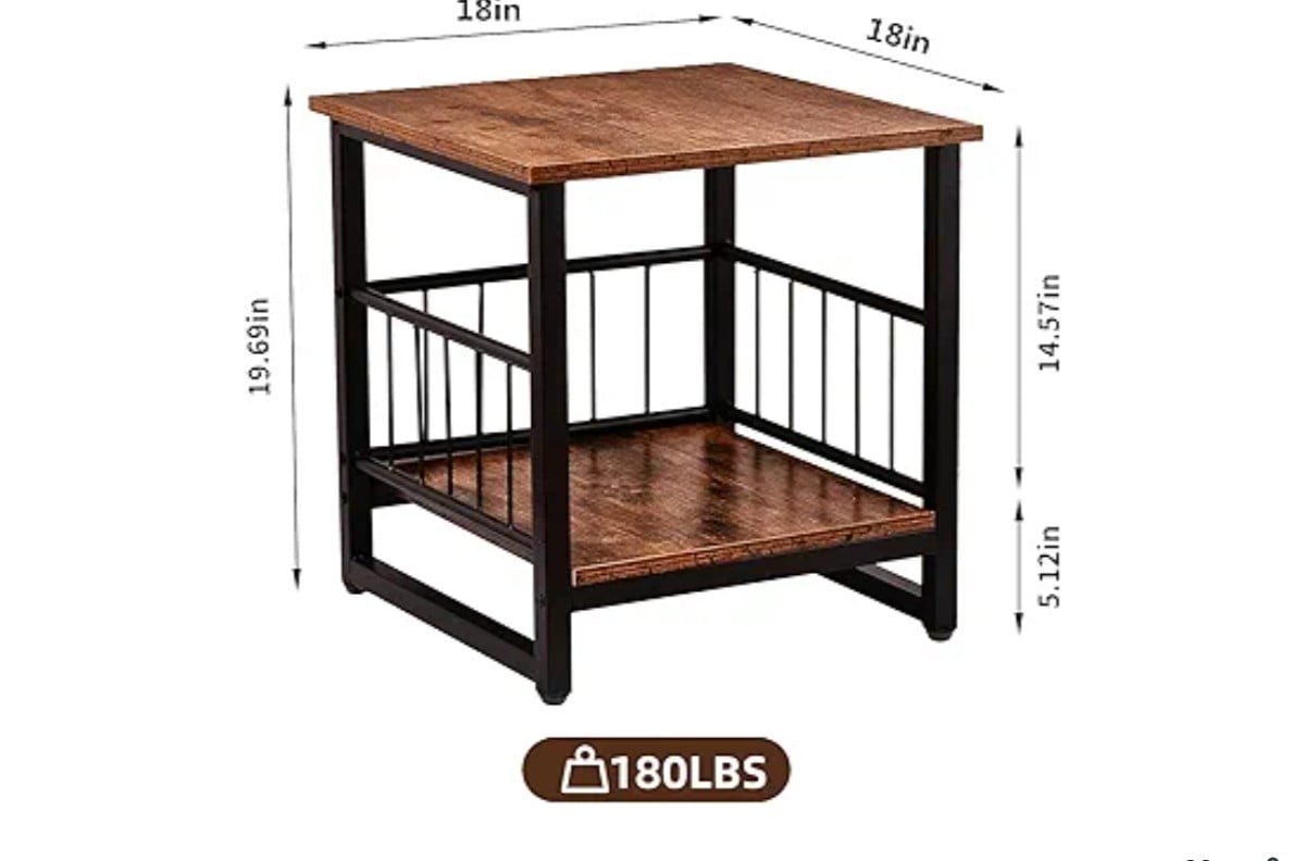 【Solid Construction】Made with high-grade MDF and sturdy metal to provide long-lasting sturdiness. The thickened tabletop of the small end table can easily hold up to 180lbs. Please note: Our industrial end tables measure 17.72 x 17.72 x 19.69 inches and are recommended for items up to 17.72 inches in size.