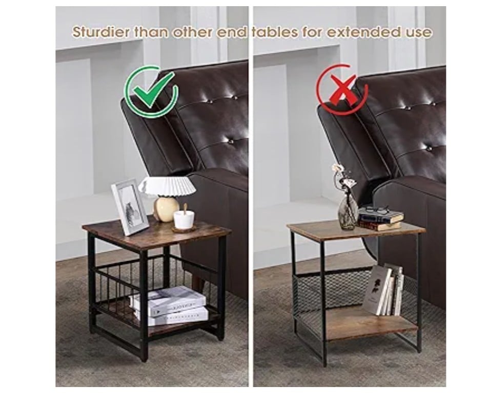【Ample Storage Space】Designed with a spacious 18-inch square tabletop and a two-tier storage shelf design, our living room side tables offer plenty of room for your laptop, cell phone, lamp, and other daily essentials. The lower storage shelf provides ample room for books, magazines and other household items.
