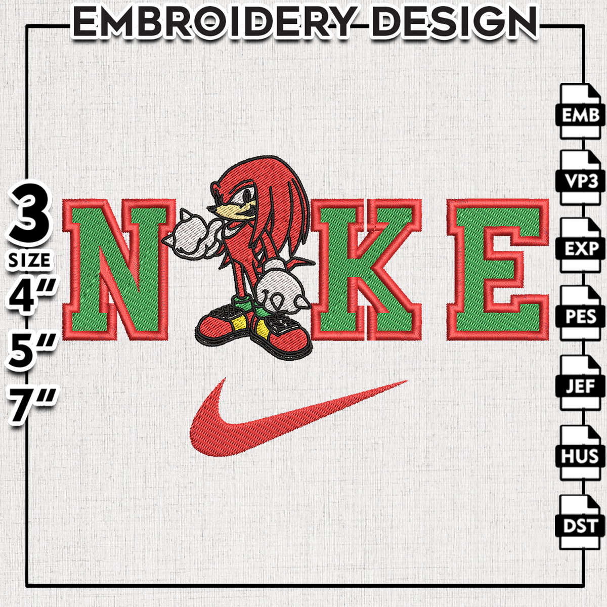Nikee Red Sonic Character The Hedgehog Embroidery Designs, Sonic The Hedgehog Machine Embroidery Files, Cartoon Character embroidery designs, Sonic Character, Digital Download