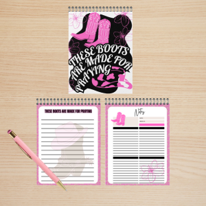Add a touch of faith and style to your desk with this “These Boots Are Made for Praying” printable notepad! This PDF includes two pre-sized notepad inserts per sheet — ready to print, cut, and assemble. You can laminate the cover, use glue or spiral binding, and create your own custom prayer pad in minutes.