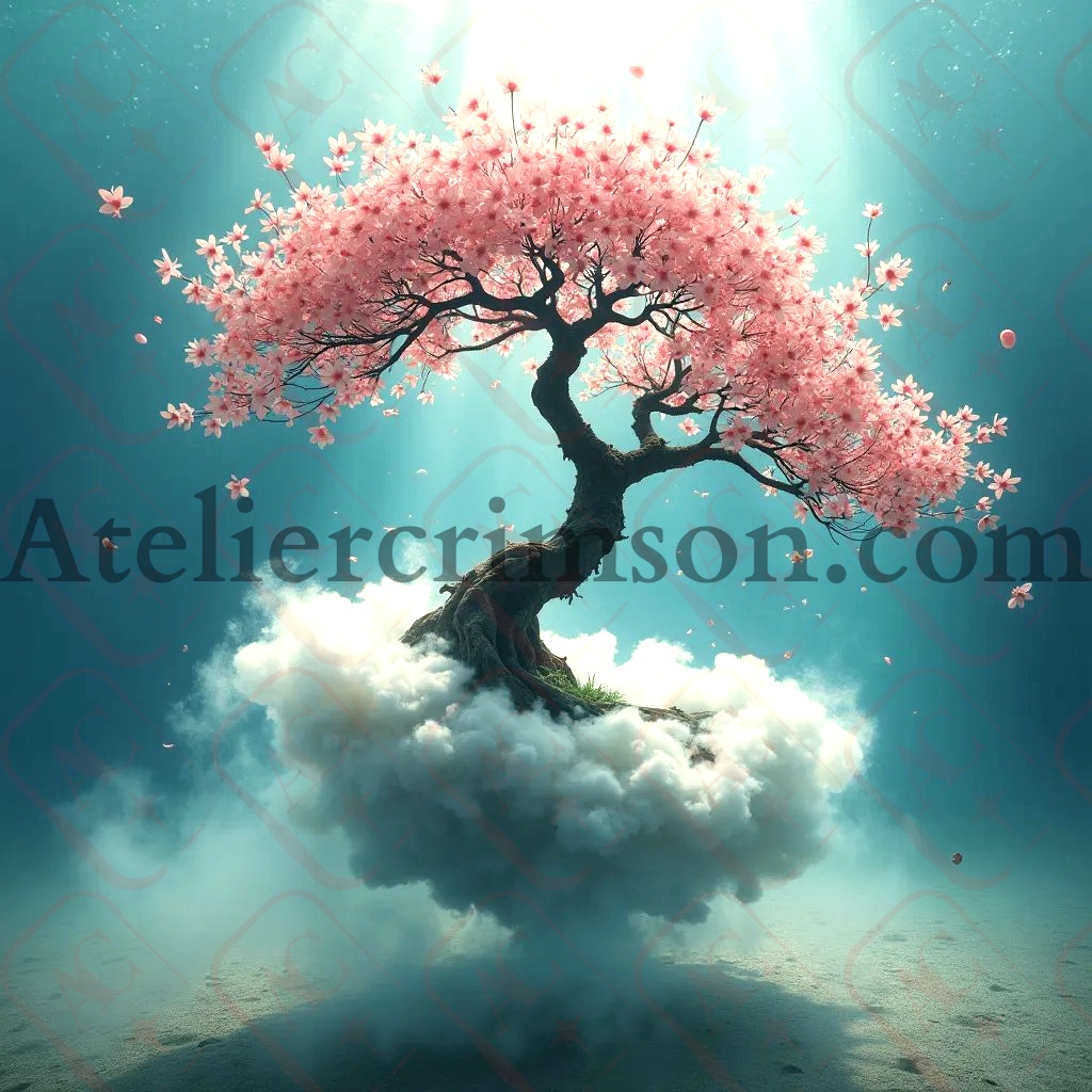 The number 7 bonzai aquamarin cloud a captivating digital painting with a serene underwater bonsai. Download Now this high quality AI-generated image, perfect for adding a touch of tranquility and creativity to any space.
