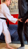 Destroyed his balls with my powerful kicks! Listen to him whimpering and suffering. So funny how men can turn to little girls with help of my karate skills. Black belt against usual slave! Watch it 🥰😈