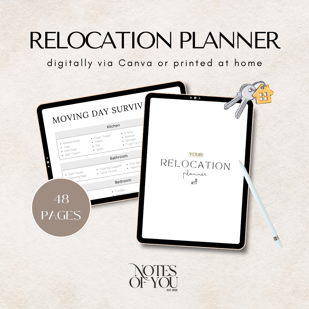 This 48-page Relocation Planner & Moving Checklist is your essential companion for a smooth, organized, and stress-free move. Designed to guide you through every step of your home transition, from initial planning and budgeting to packing and settling into your new space, this printable and editable planner invites you to take control of your move and create a seamless experience. Whether you're relocating across town or across the country, this planner lovingly supports you in creating the home of your dreams.