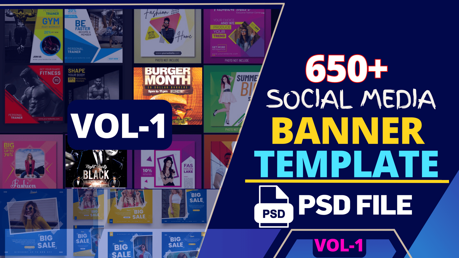 Explore our comprehensive bundle of over 650 social media banner templates, available in Volume 1
