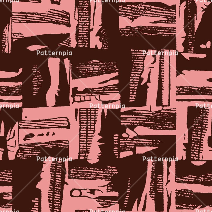 Hand-drawn abstract blocks and textured stripes in dusty pink and chocolate brown.