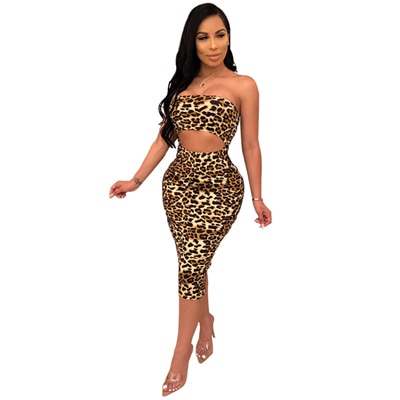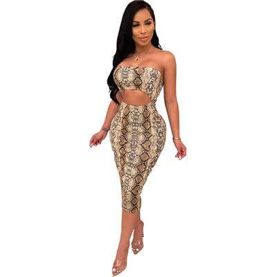 Snakeskin Print Cutout Women Strapless Dress Fashion Sexy Sleeveless Bodycon Midi Night Club Party Dress Casual Vestidos