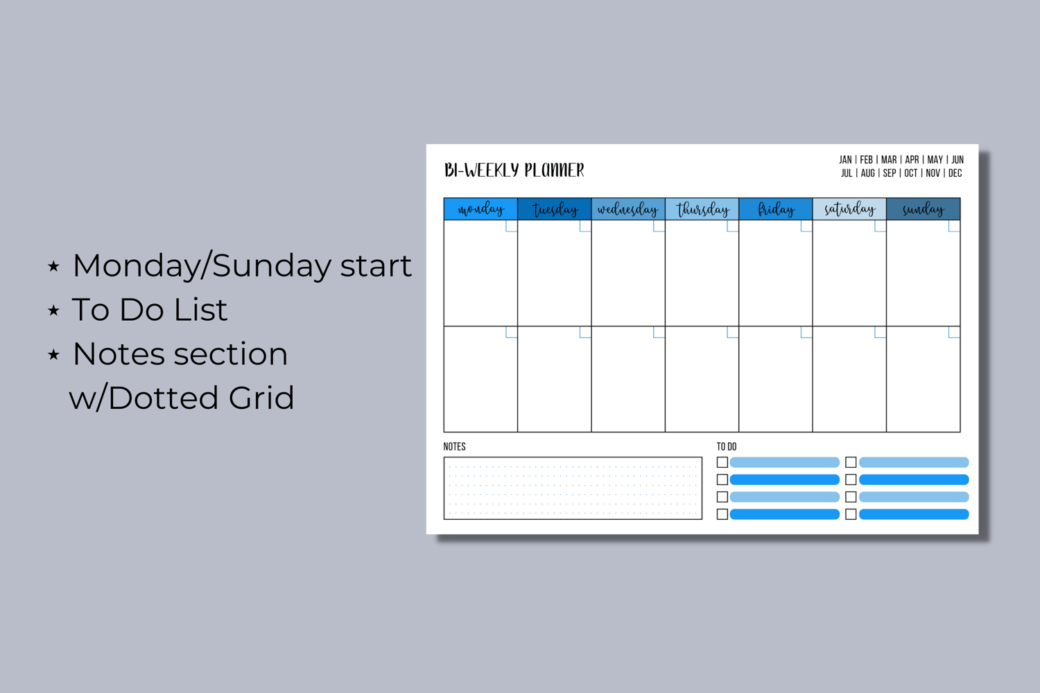 This bundle includes five planners: daily, weekly, bi-weekly and monthly, both in landscape and portrait mode. It’s the perfect bundle to mix and match throughout the year and match your daily life! 😊