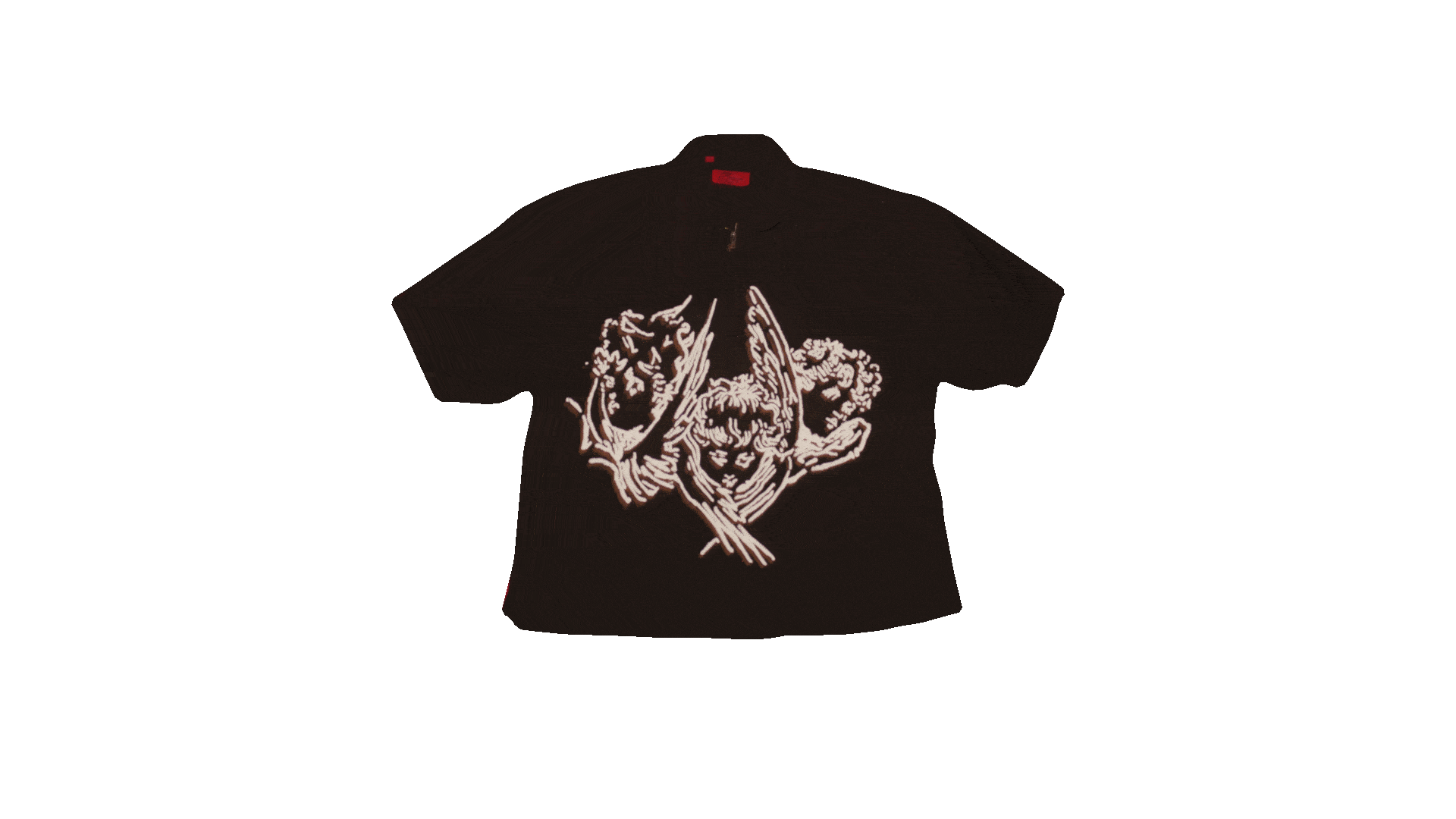 Large Hand Painted Cropped Black Quart Zip Shirt / Chest - 22.5inch / Length - 27.5inch / Sleeve - 19inch