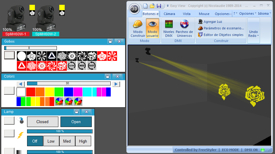 Esta Librería SSL2 está optimizada para trabajar con Magic 3d Easy View. Es decir para ver una representación 3D de las secuencias que estemos realizando con Freestyler, QLC+ o cualquier otro soft que se conecte con Magic 3d.