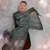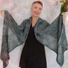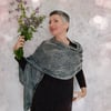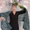 This wrap is worked using a laceweight yarn, that is used plain in the two ends (at the beginning and the end of the piece), giving an airy and translucent appearance to these parts and a more elegant drape to the entire stole.