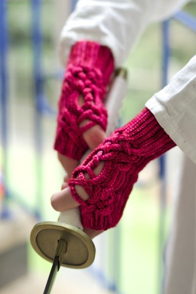 These mitts were inspired by Japanese mangas. Wear them to fight Evil in style! The mitts are worked with back loop only slip stitches. They feature my technique of horizontal cables.