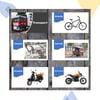 bicycle, motorcycle, scooter, tricycle, tuk tuk, car, SUV, van, truck, pick up truck, bus, coach, boat, ship, canoe, submarine, train, tram, airplane, and helicopter.