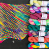 - 437-464yd / 400-425m, 3.5 oz / 100g, 4 ply or fingering weight yarn. The yarn used in the pattern pictures is Under the Olive Tree Chora 4ply yarn, 75% Superwash Merino / 25% Nylon in the Flying Saucers colorway