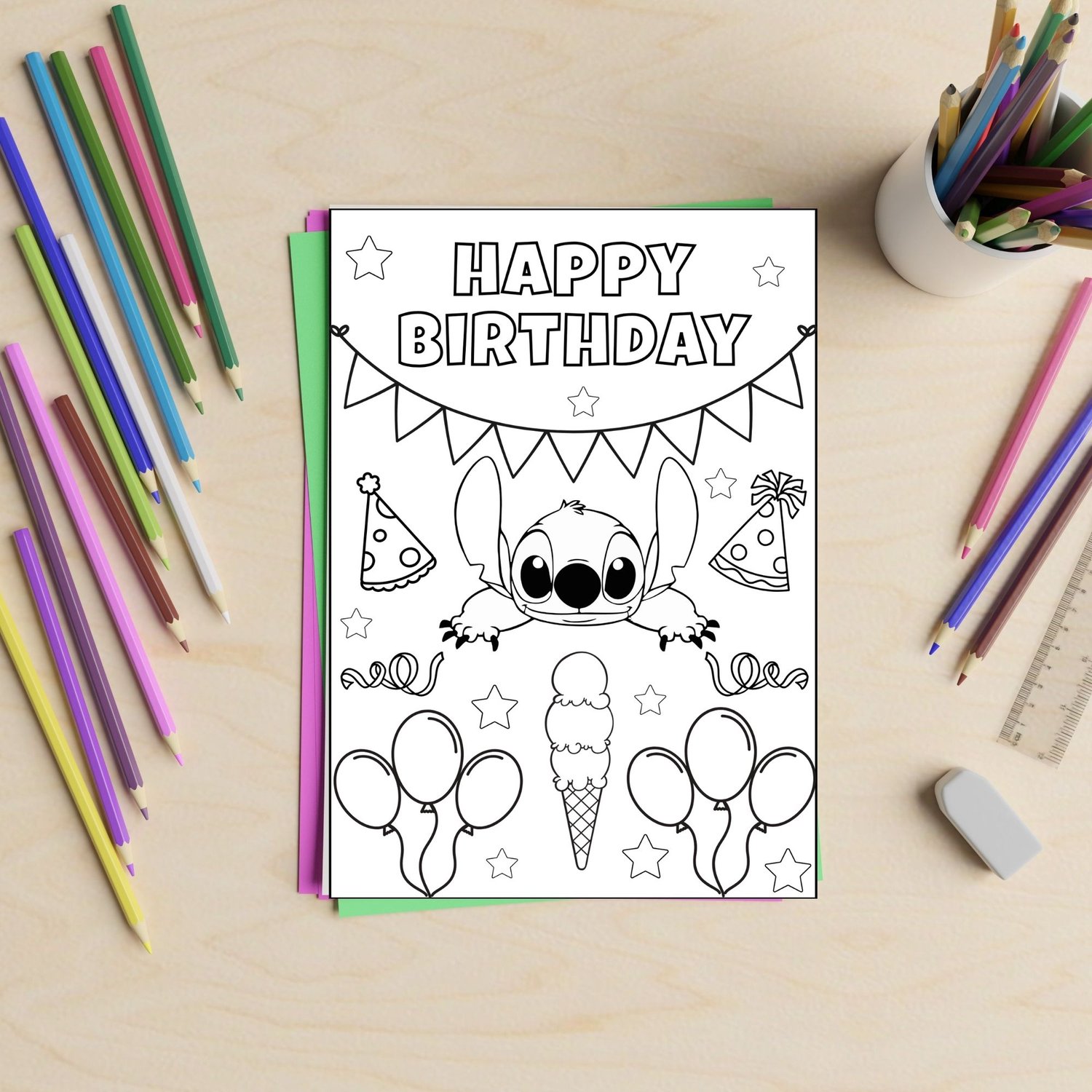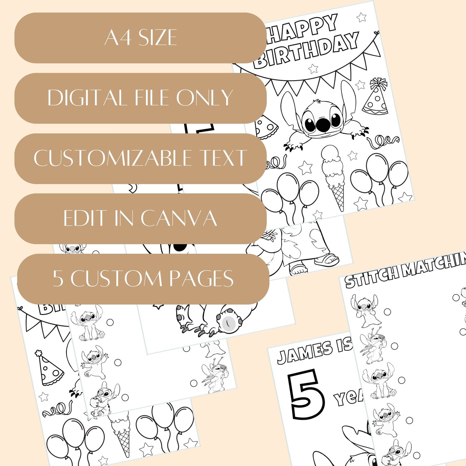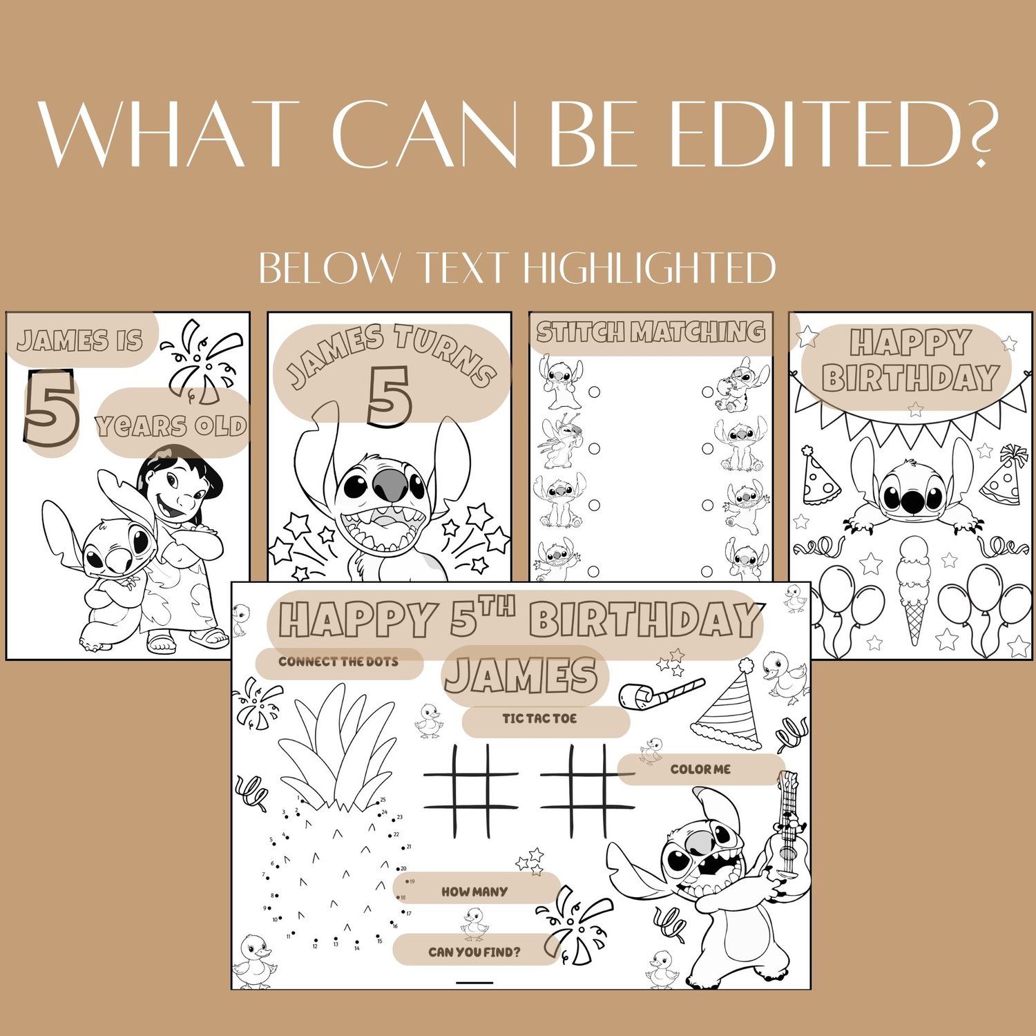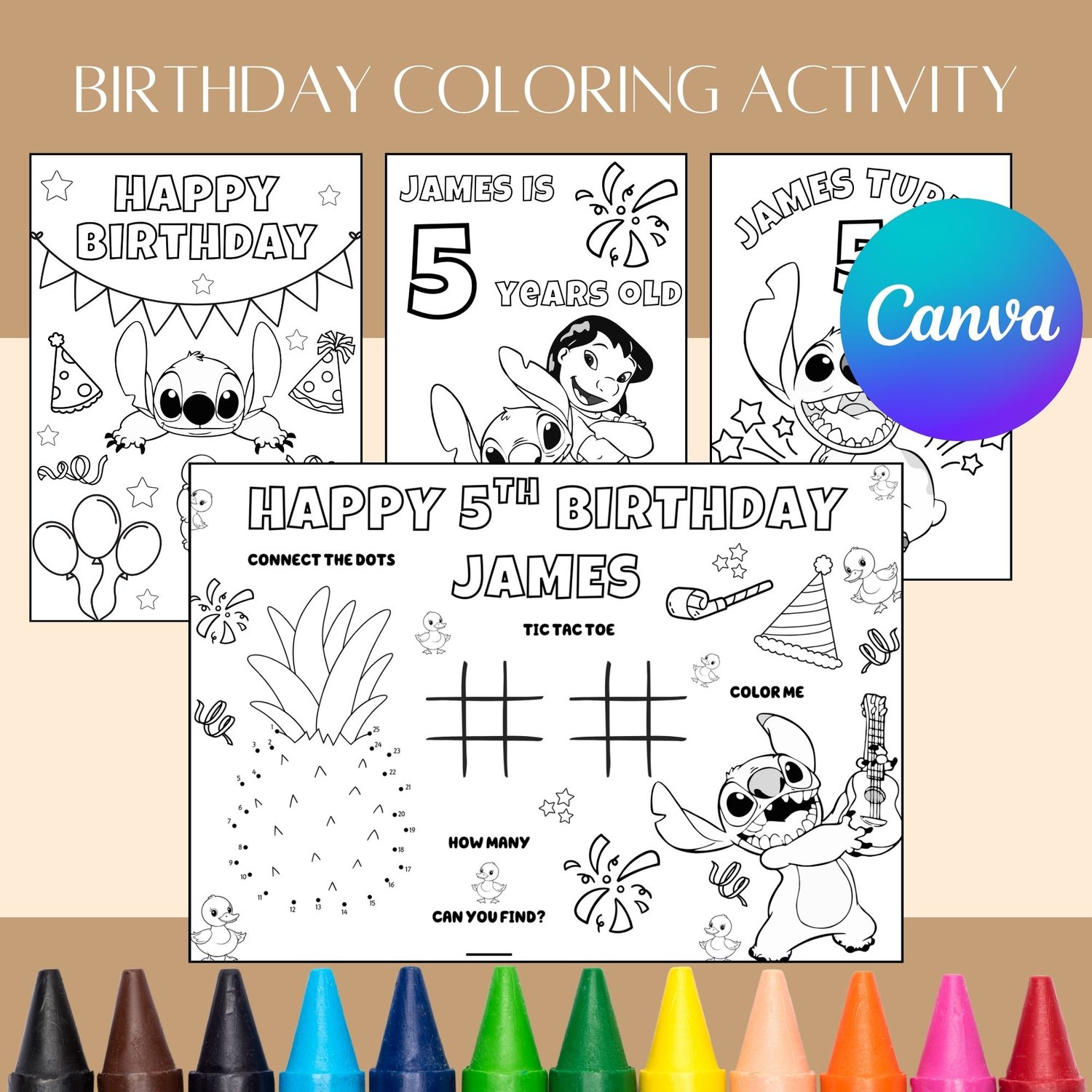 Bring extra fun to your little one’s birthday with our Customizable Lilo & Stitch Coloring Activity! This printable coloring set is perfect for keeping kids entertained at birthday parties, playdates, or Lilo & Stitch–themed celebrations. Featuring adorable designs inspired by Lilo, Stitch, and friends, these pages provide hours of creative fun. Personalize each coloring page with your child’s name, age, or a special party message to make this activity extra unique and memorable. Perfect for Lilo & Stitch birthdays, Hawaiian-themed celebrations, or any tropical party, this interactive coloring activity adds a creative and engaging element to your celebration.
