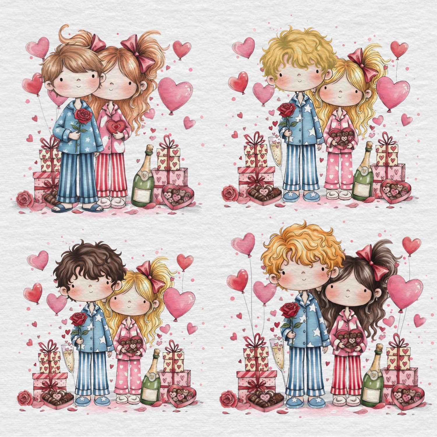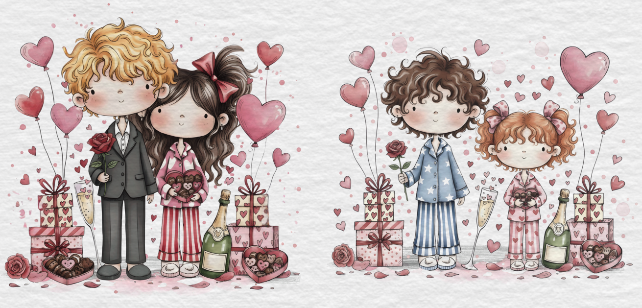 Celebrate love and sweetness with this Whimsical Valentine PNG set 💕 Featuring adorable couples, girls and boys, hearts, and gifts, these digital illustrations are perfect for Valentine’s Day crafts, cards, stickers, and sublimation projects. Each complete design is delivered in high-quality 300 DPI PNG format with transparent backgrounds for easy use in all your creative projects.