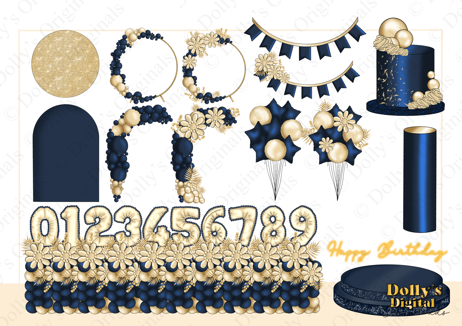 Instant digital download of our Ten Days To Party Navy and Pale Gold Character Bundle PNG (68 PNG’s)