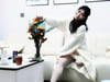 On her day off, Alisa planted a vase of beautiful flowers. Then she tried baking a delicious cake.