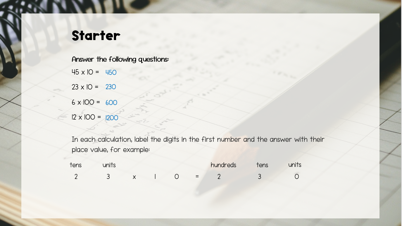 ✔ Start your lesson with challenging starter questions that reinforce key concepts. Guide your students through clear, modelled examples, then move on to an individual worksheet, and finish with engaging plenary questions.