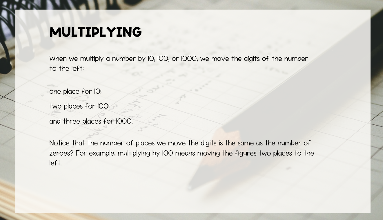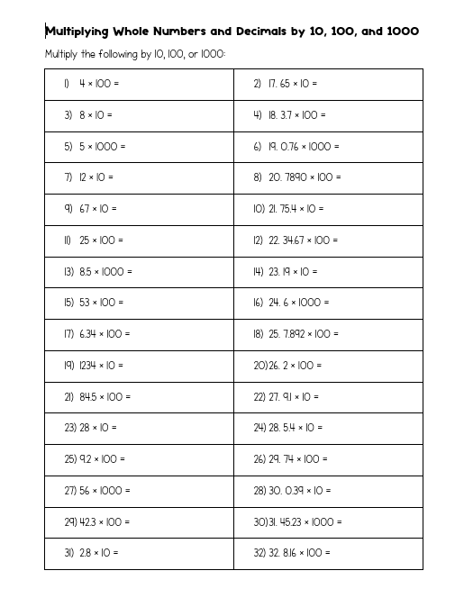 Comprehensive Math Resource: Multiply Whole Numbers & Decimals by 10, 100, 1000