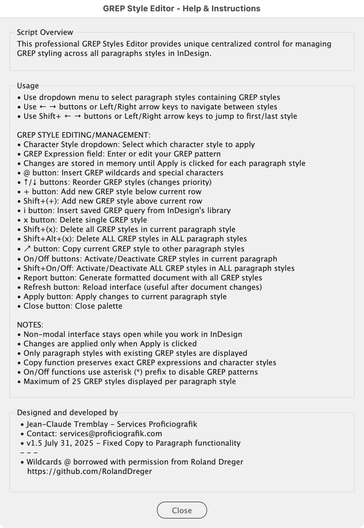 GREP Style Editor – a revolutionary Adobe InDesign script that transforms how you manage GREP styles across your documents. This professional tool provides unprecedented centralized control, allowing you to edit, organize, and apply GREP styles across all paragraph styles from a single, intuitive interface.