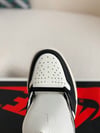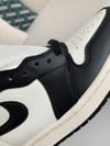 Cette version de la se compose principalement d’empiècements noirs sur une empeigne en cuir box blanc, on retrouve aussi des pièces en suède marron à l'arrière de la paire. Le branding traditionnel de Jordan est présent avec le Swoosh noir et le Jordan Wings. Une outsole noire vient finaliser les derniers détails de la création !