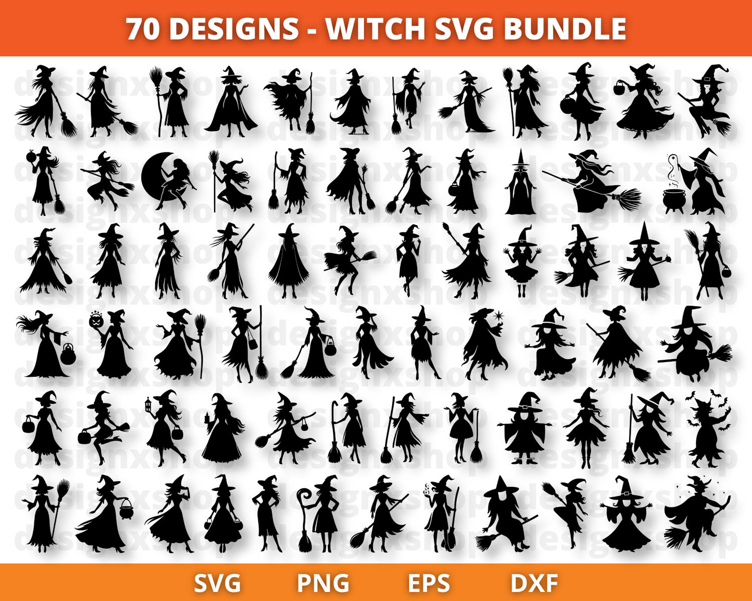 Witch SVG Bundle: Halloween Clipart, Witchcraft Silhouette (70 Designs)