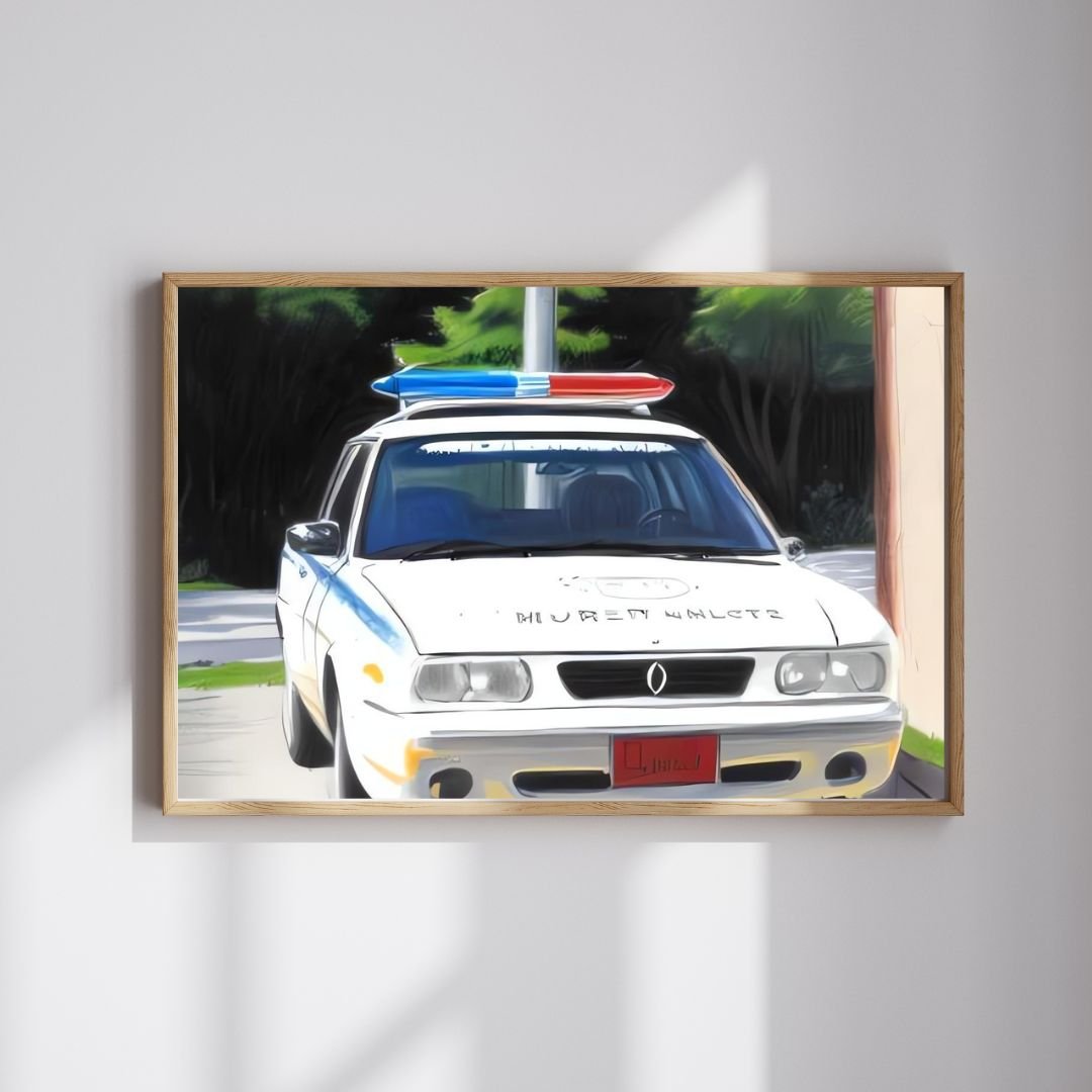 There is something timeless about old patrol cars, the flashing lights, the sense of authority, and the many stories they could tell. This artwork began with a photograph of a police car parked on the streets of Venezuela more than twenty years ago. Over time, the image was carefully reimagined into a bold piece of retro wall art that blends memory with creativity.