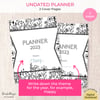 Inside, you'll find a flexible undated layout, allowing you to start using your planner at any time of the year. The pages are filled with ample space for you to jot down your to-do lists, appointments, and notes. There are also monthly, weekly, and daily calendar views, a journal page, and 3 pages of motivational quotes.