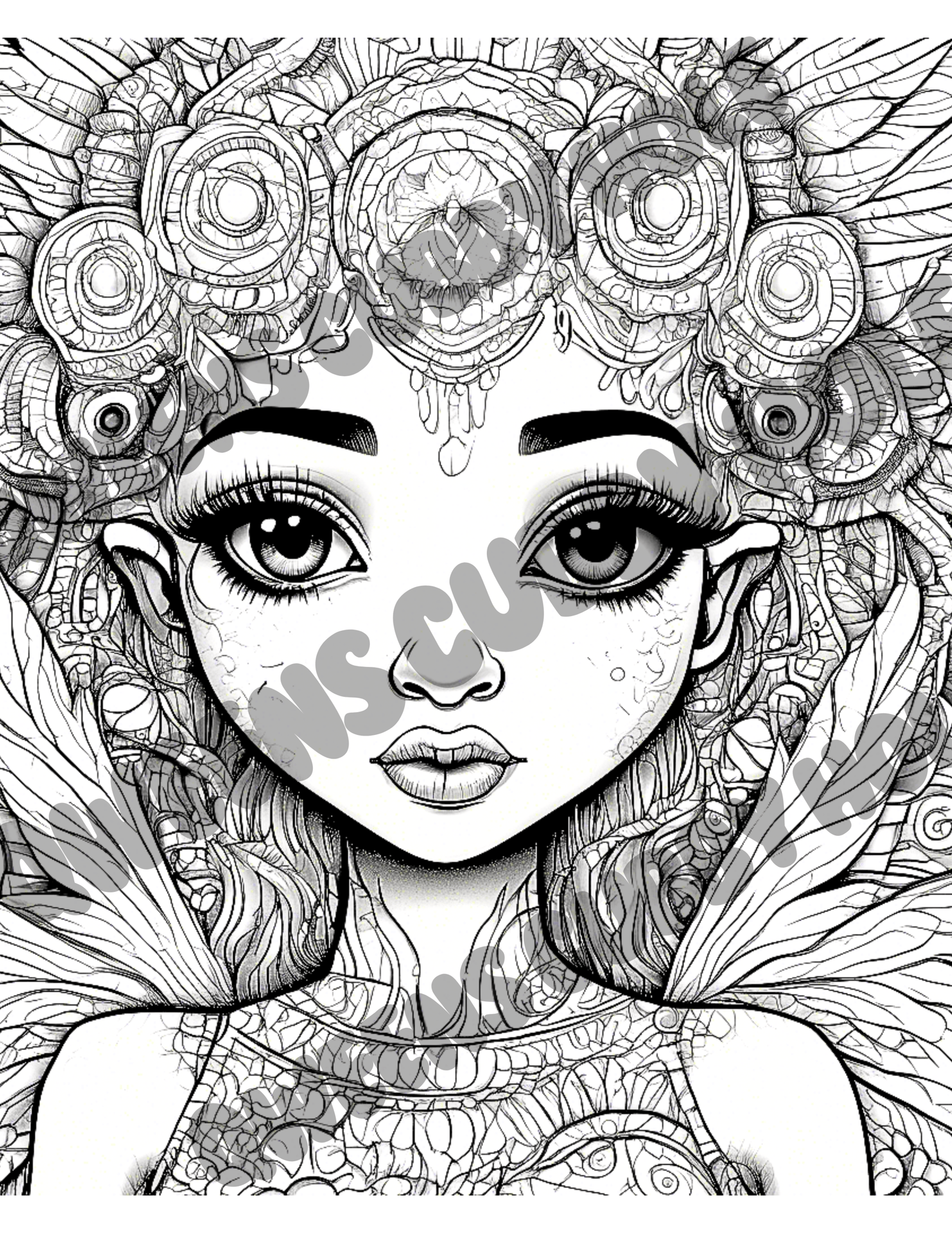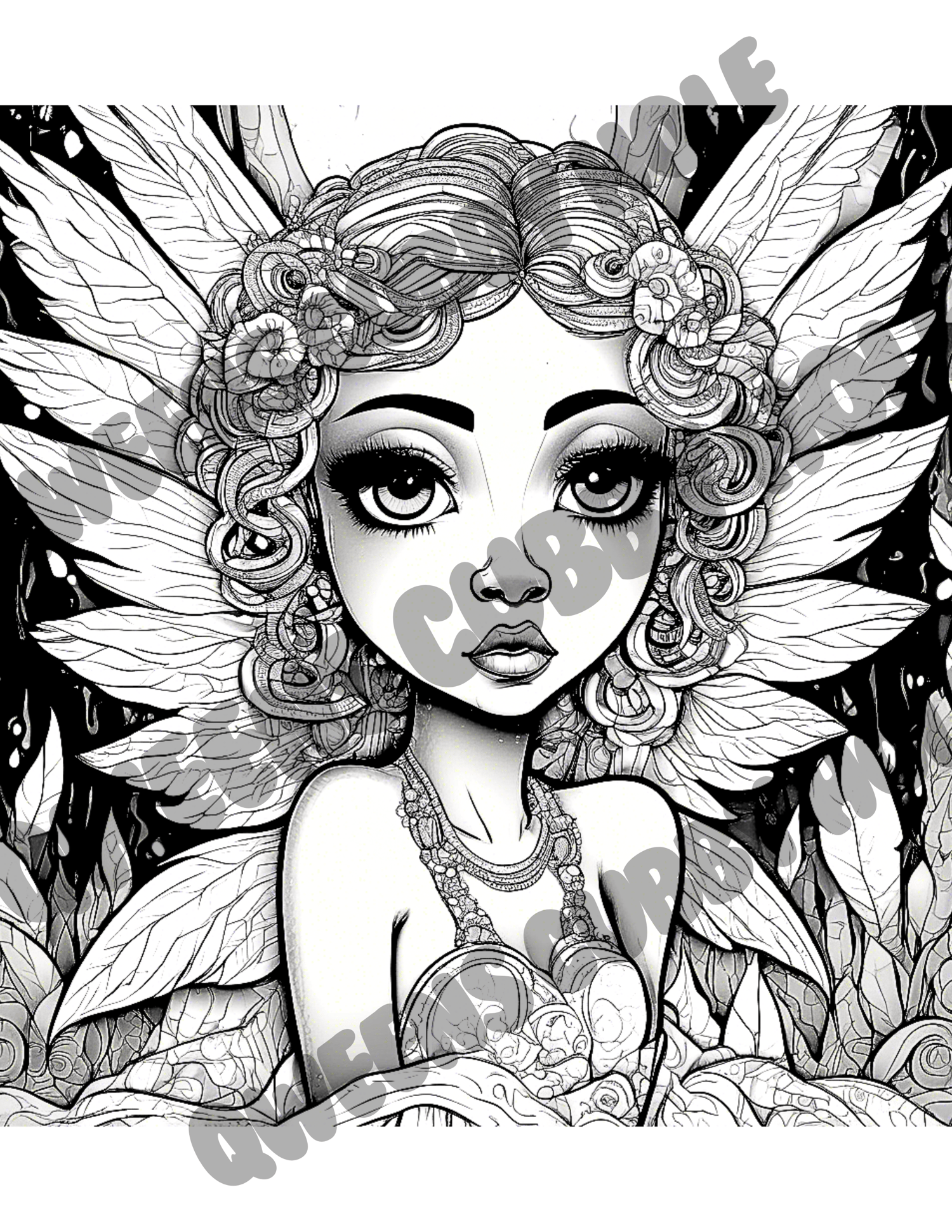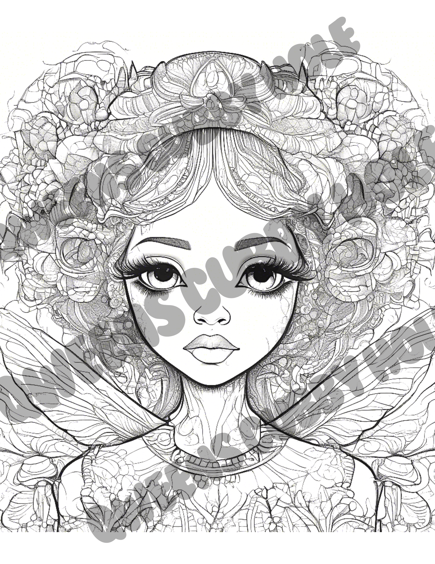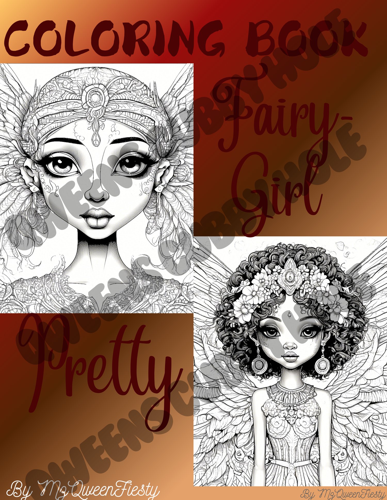 FAIRY GIRL PRETTY COLORING BOOK 9 pages +Cover