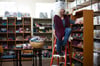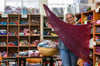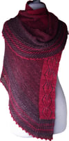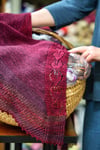 Knitting this asymmetric triangle begins by casting on just two little stitches. The stitch count increases on every row; most of the increases are along the leading edge, so the triangle grows more quickly along that side. As work progresses, the colors slightly shift from the brightest shade to the darkest, except for the leaves… The leaves are worked in the lightest shade throughout. Don’t like the color order? Vintner would look just as good with the colors reversed, starting dark, and going light. All five shades are used for the simple edging, ending with an optional picot bind off for a bit more fun.