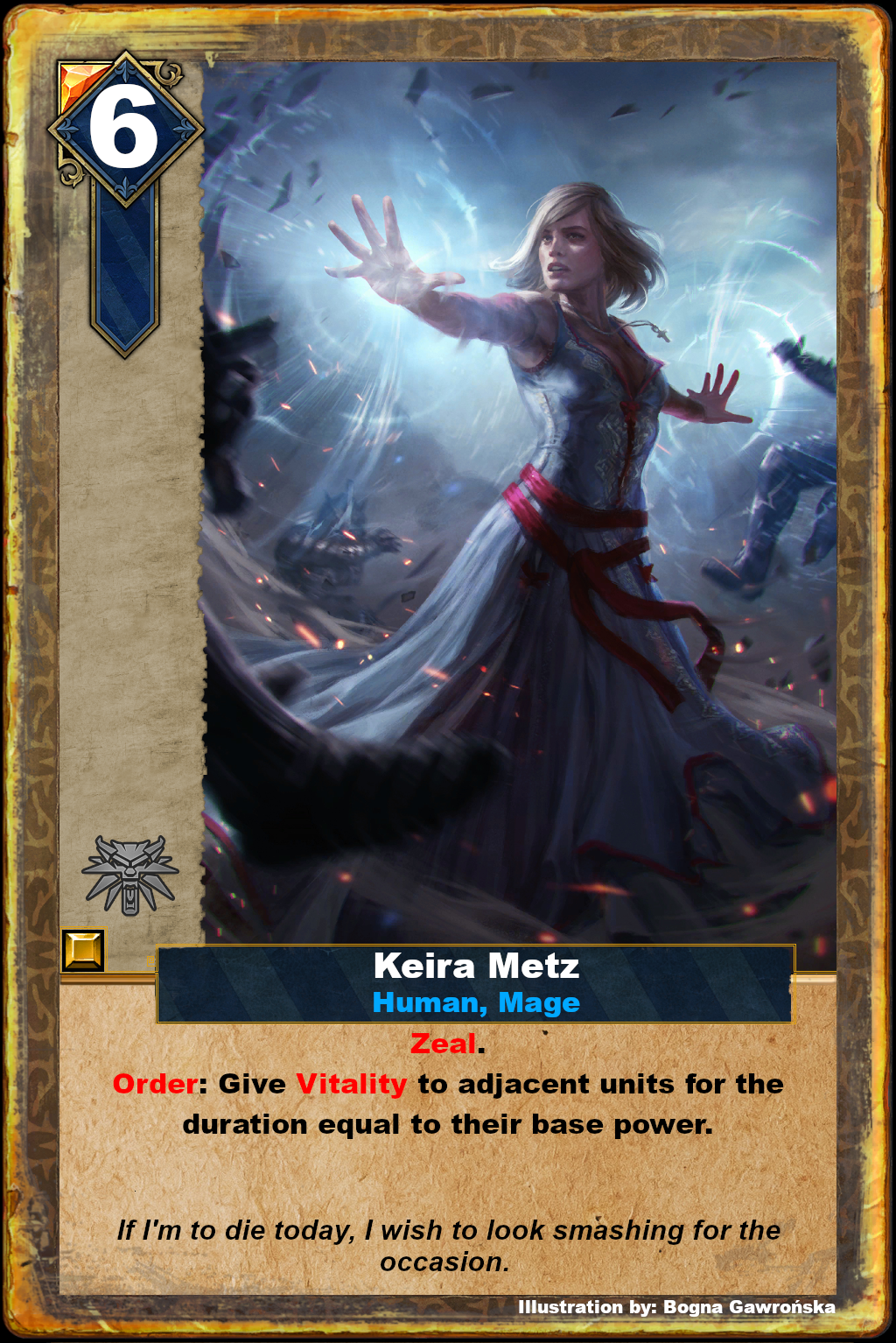 Become the commander of one of the four armies and face the treacherous enemy. Use military superiority, brute force, deceit and magic to defeat your opponent. The object of the Gwint card game is to defeat the opponent in two rounds. The army is represented by cards of units that come from the world of the Witcher.
