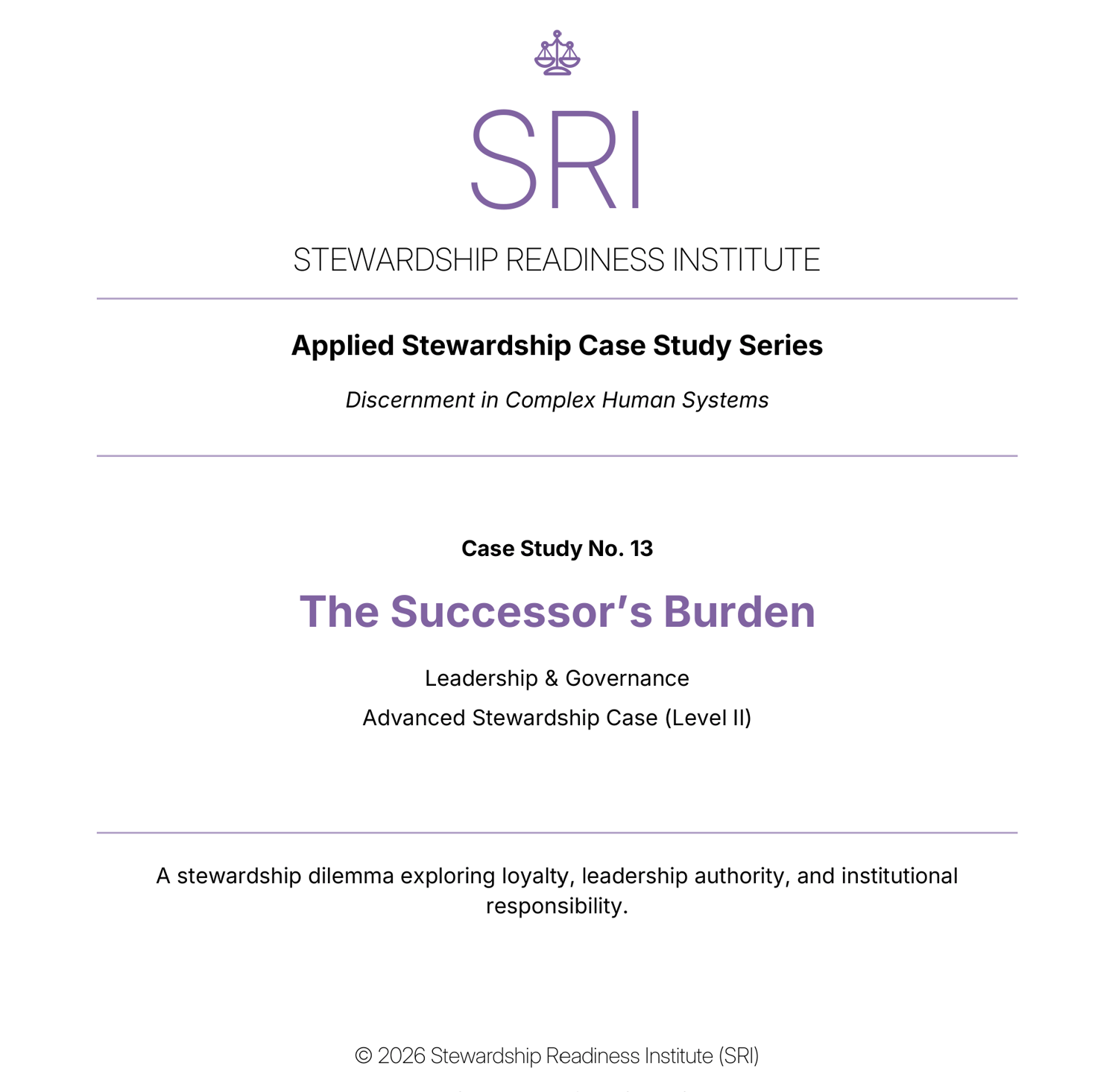 Case Study 13 – The Successor's Burden explores a leadership dilemma where the weight of leadership passed without preparation. This case invites reflection on underlying system dynamics, hidden incentives, and the often-unseen forces shaping behavior. Through this lens, leaders are challenged to move beyond surface-level responses and engage the deeper patterns influencing outcomes, strengthening both clarity and long-term stewardship capacity.