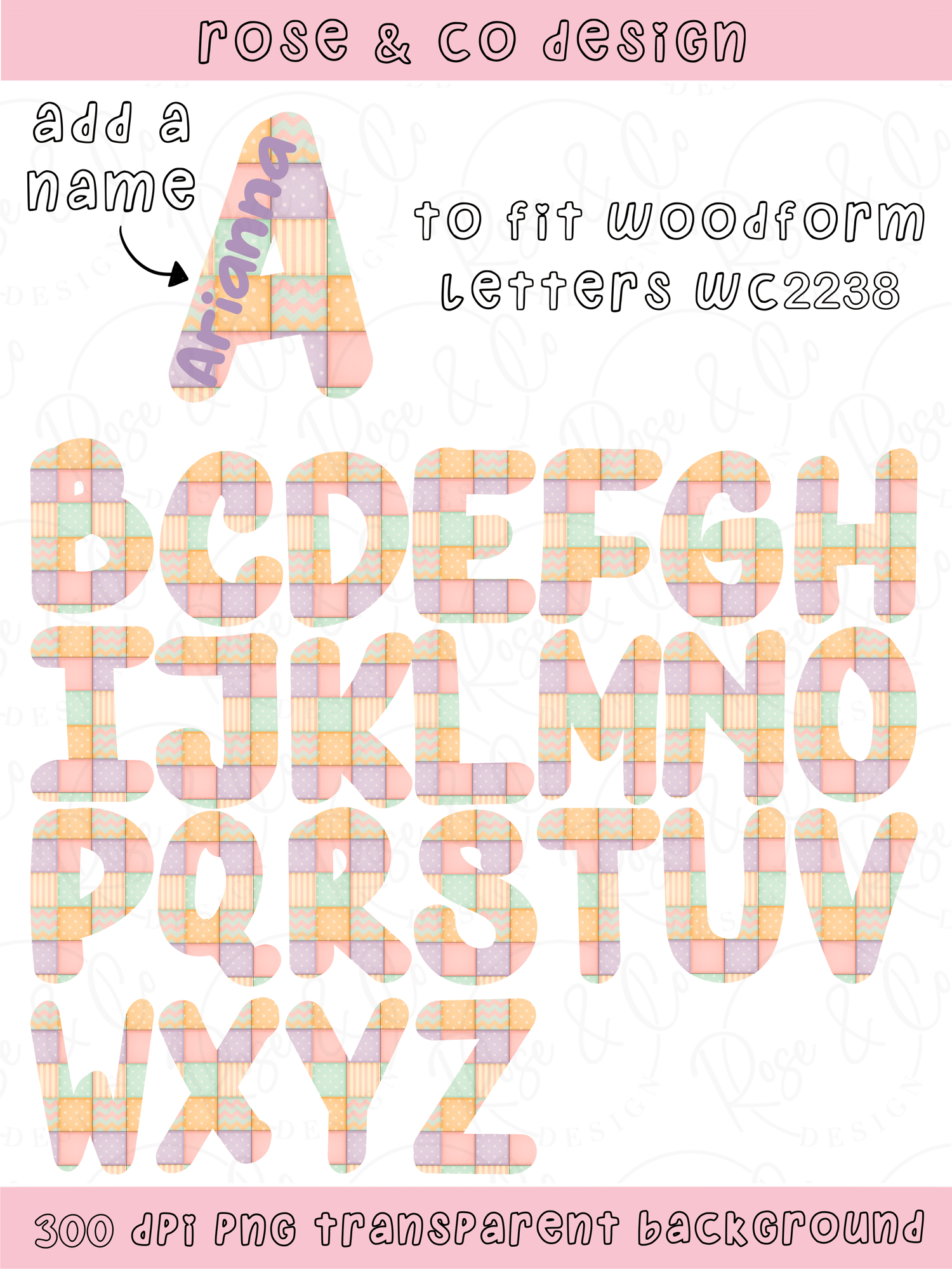 Multicolour Patchwork Alphabet letters-PNG-woodform (WC2238)