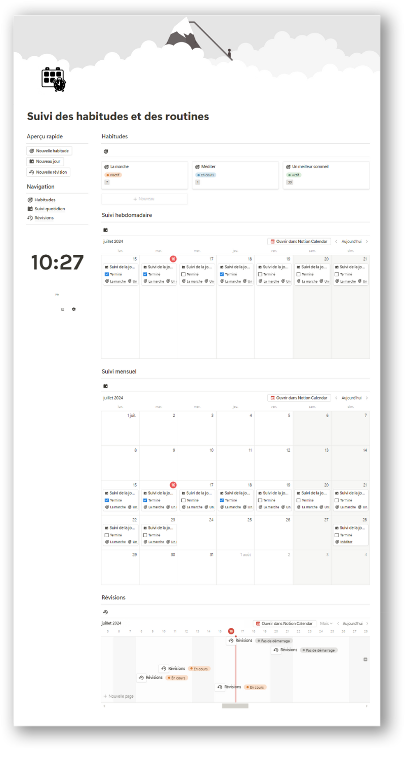 Vous souhaitez atteindre vos objectifs et développer des habitudes saines de manière efficace ? Notre modèle de suivi des habitudes et des routines Notion est conçu pour vous aider à rester concentré et organisé sur la voie du succès.