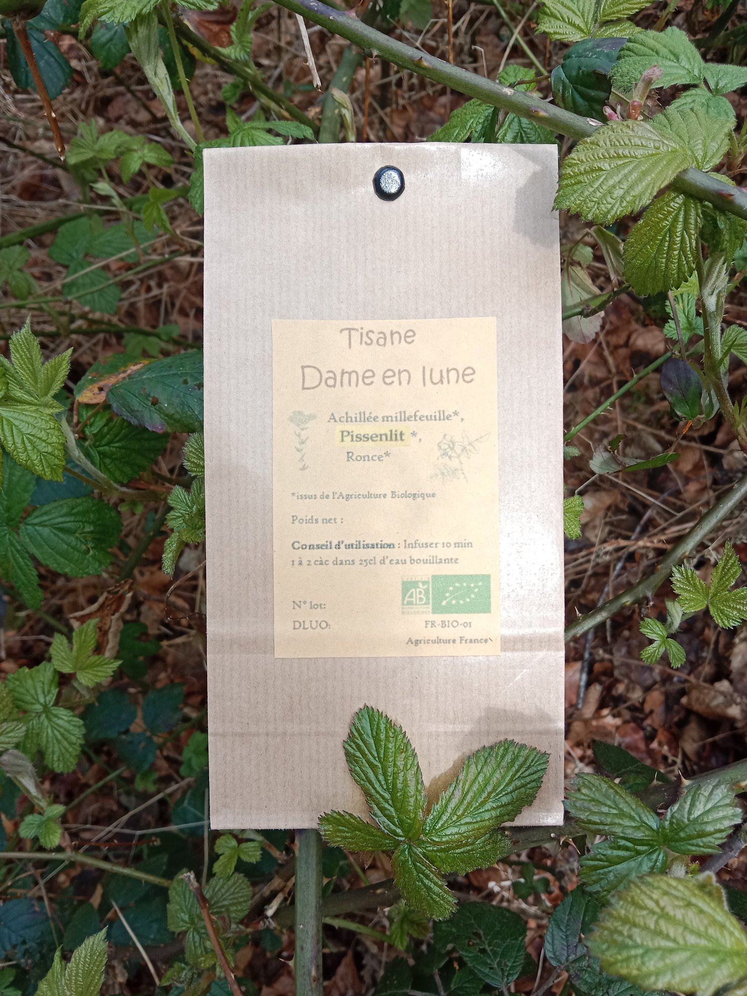 Composition : achillée millefeuille (sommités fleuries), ronce (feuilles), pissenlit (fleurs)