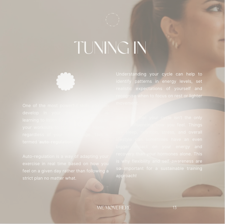Feeling like your energy and motivation seems to ebb and flow for no clear reason? This eBook helps you to understand your menstrual cycle and how it influences your training, mood, and energy - so you can move with confidence, not confusion.