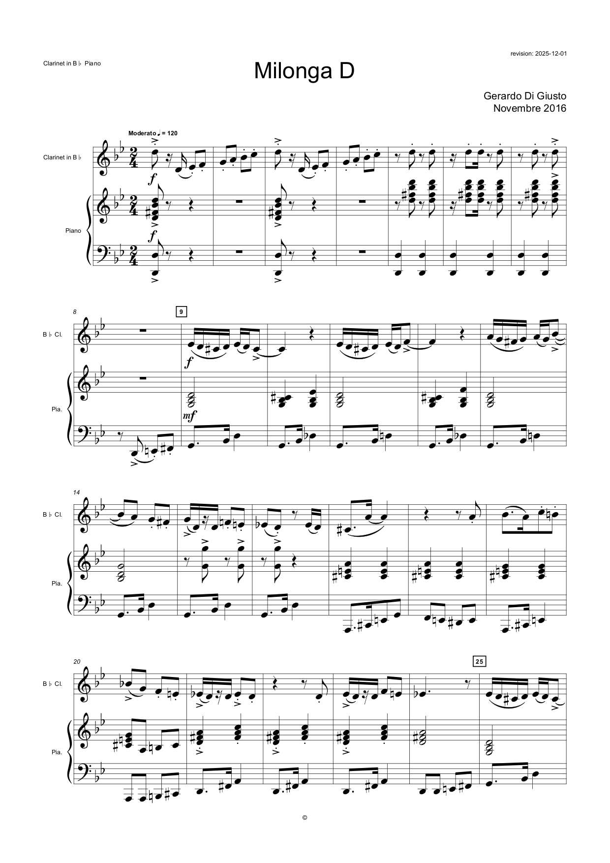Milonga D version Clarinette et Piano