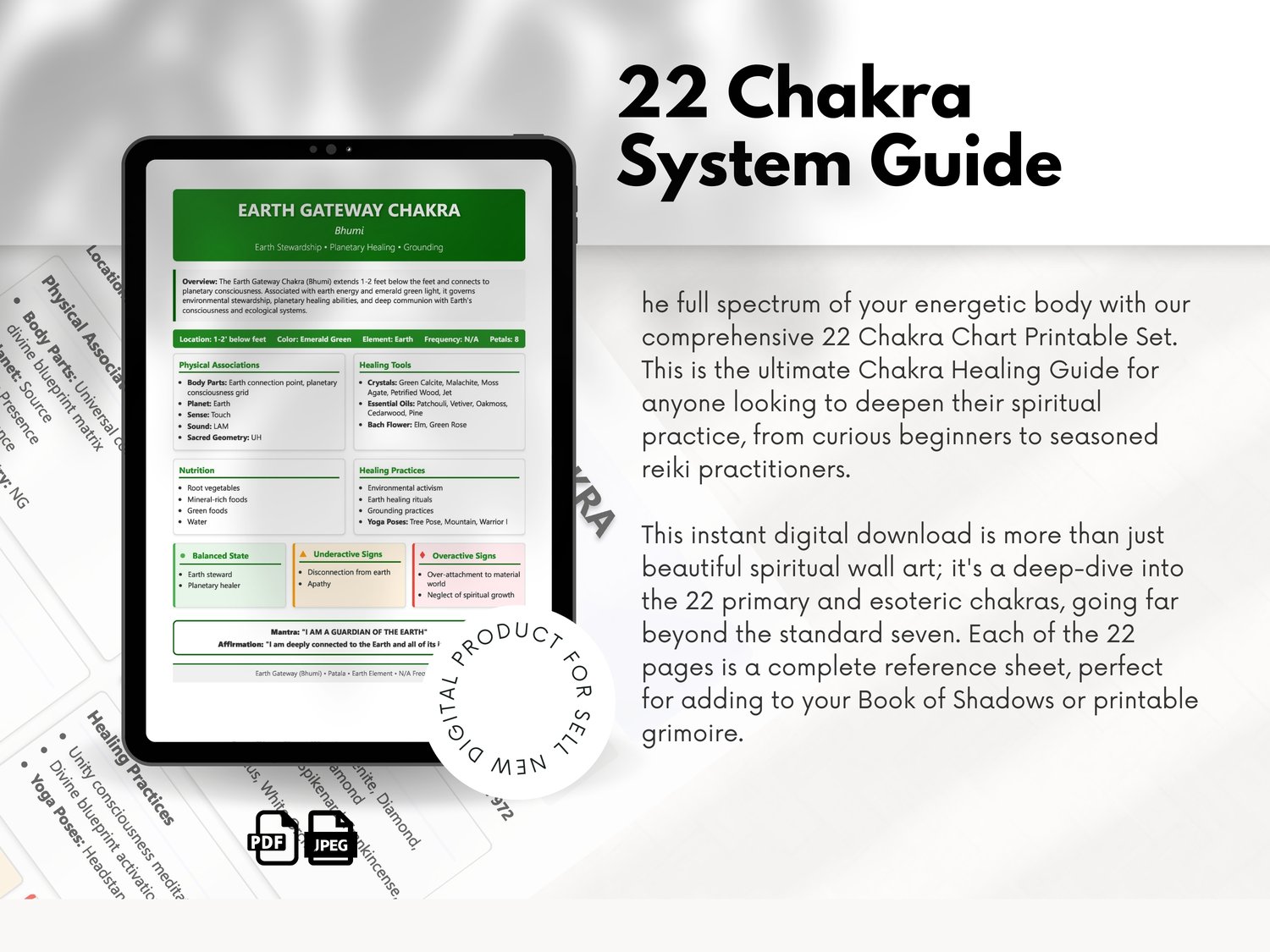 This instant digital download is more than just beautiful spiritual wall art; it's a deep-dive into the 22 primary and esoteric chakras, going far beyond the standard seven. Each of the 22 pages is a complete reference sheet, perfect for adding to your Book of Shadows or printable grimoire.