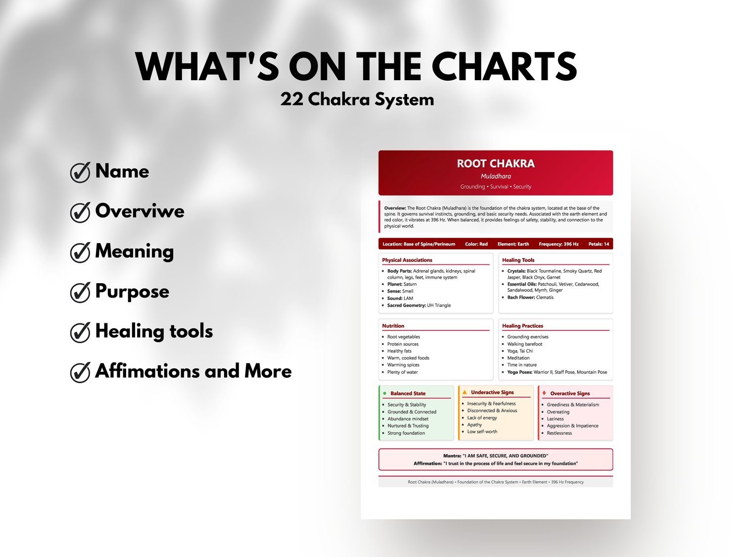You'll receive one high-resolution, multi-page PDF file containing 22 beautifully designed info sheets. Each chart details: