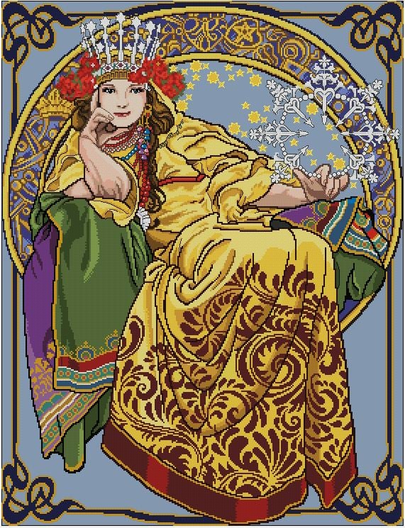 Lady Hyacinth Art Nouveau Design Cross Stitch PDF Downloadabale Pattern