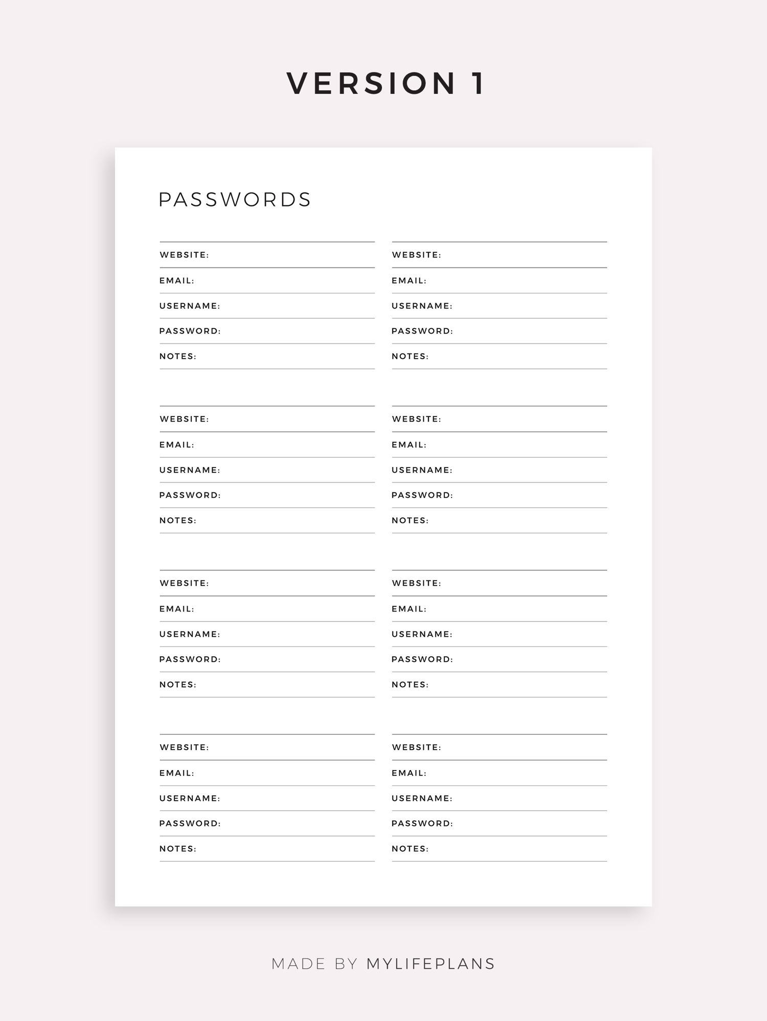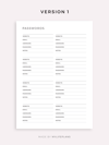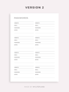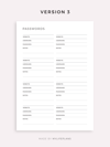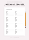 This is a printable password tracker — just download, print, and start using it right away.