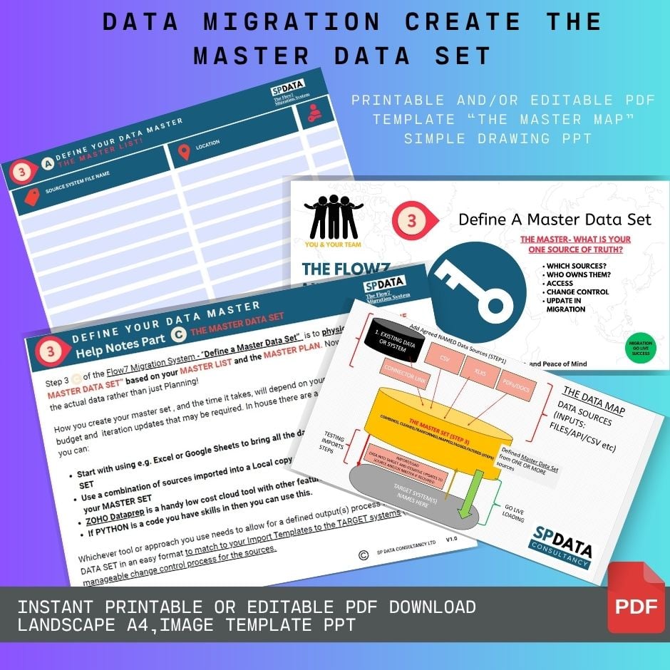 This simple but crucial template helps you establish your "single source of truth" for migration -Step 3 of the Flow7 Migration System. Stop working with scattered data sources and create one definitive master dataset that becomes the foundation for your entire migration.