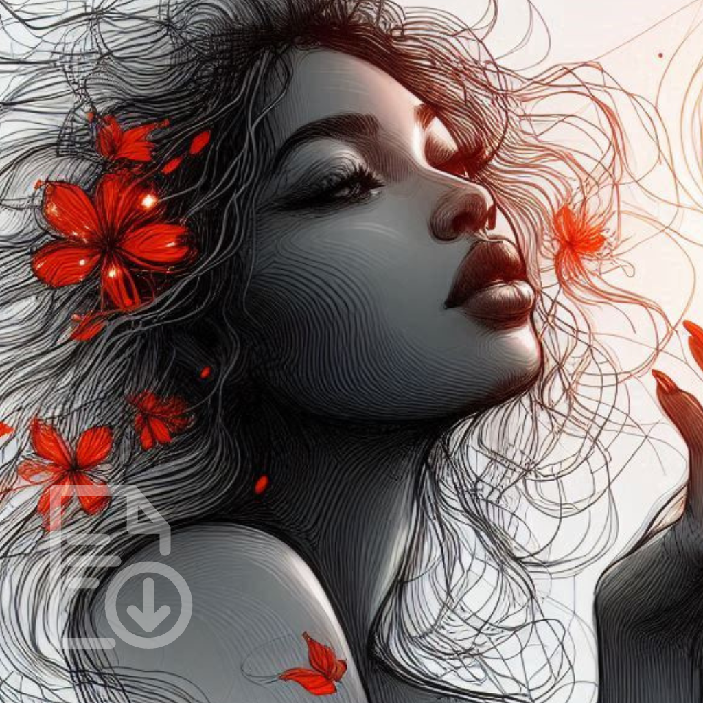 This high-resolution image boasts a crisp 150 DPI, ensuring every meticulous detail of the impasto artwork is captured flawlessly. The image is sized perfectly for a show-stopping print, allowing the black-and-white contrast and the rose's ethereal glow to shine.
