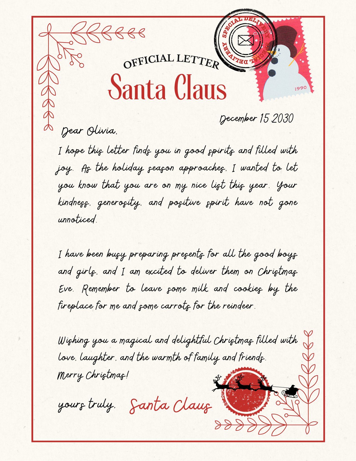 Editable | Official Letter from Santa Claus | Digital Download