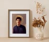 In subdued hues, this artwork captures the essence of Saint Carlo Acutis, a modern saint who embraced his divine calling in the digital realm. At its heart, Carlo stands with serene warmth, his youthful face reflecting unwavering devotion and humble simplicity. This painting beckons viewers to contemplate the profound connection between the digital age and enduring values of faith and compassion. A tribute to the patron saint of computer geeks and programmers, it reminds us that even in technology, divine grace shines. This elegant masterpiece both honors Saint Carlo Acutis and celebrates the harmonious blend of faith and technology in our modern world.