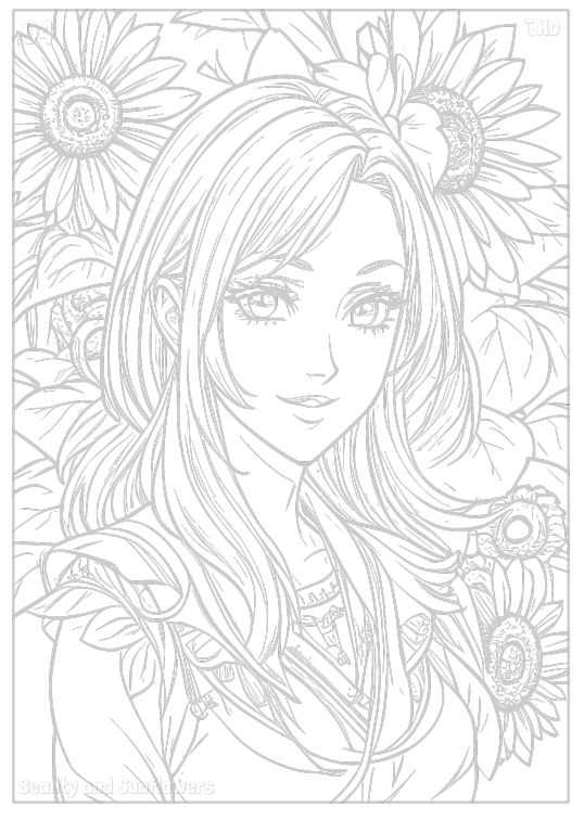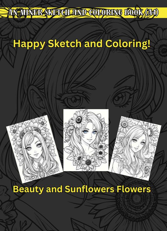 A4 An Miner Beauty & Sunflowers Flowers Sketch and Coloring Book for Adults
