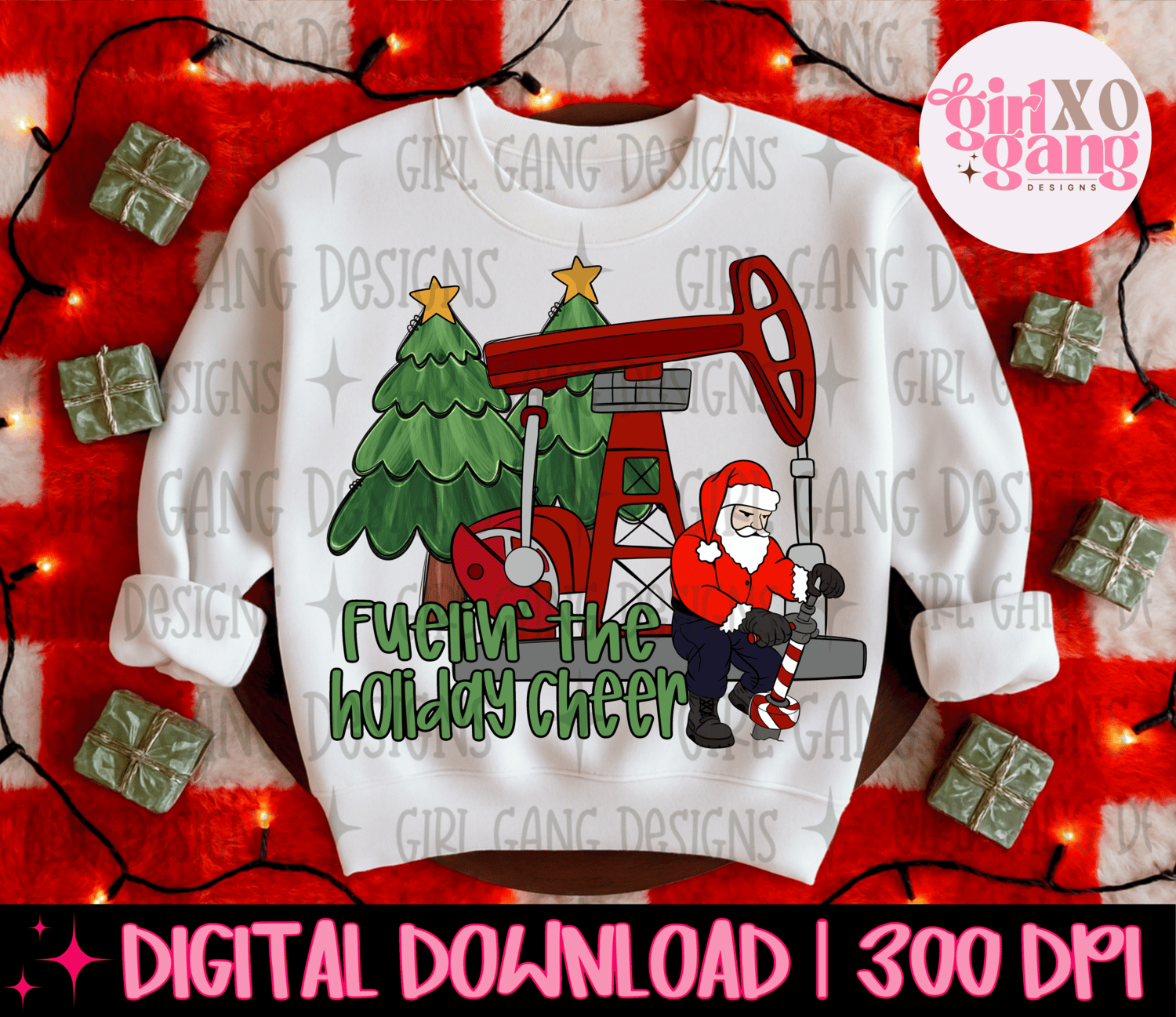 Fueling the holiday cheer png, Oil field Santa Claus png, blue collar Santa png, oil rig Santa Christmas design png