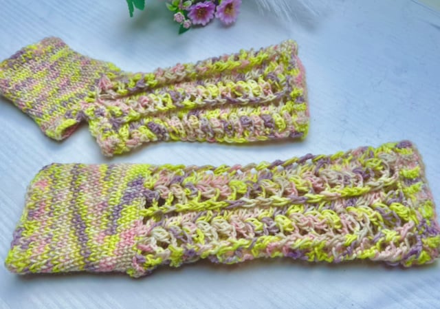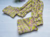 These seamless, toeless, and heel-less socks are crocheted from soft Ramona merino wool in spring shades of yellow, green, and pink. The bottom part, made of sturdy waistcoat stitches (knit-look), ensures support during yoga or Tai-chi, while the upper part will charm you with its airy lace pattern and relief details. Thanks to the bottom-up construction, you can easily adjust the size to create a piece that perfectly combines modern design, the warmth of wool, and total freedom of movement.