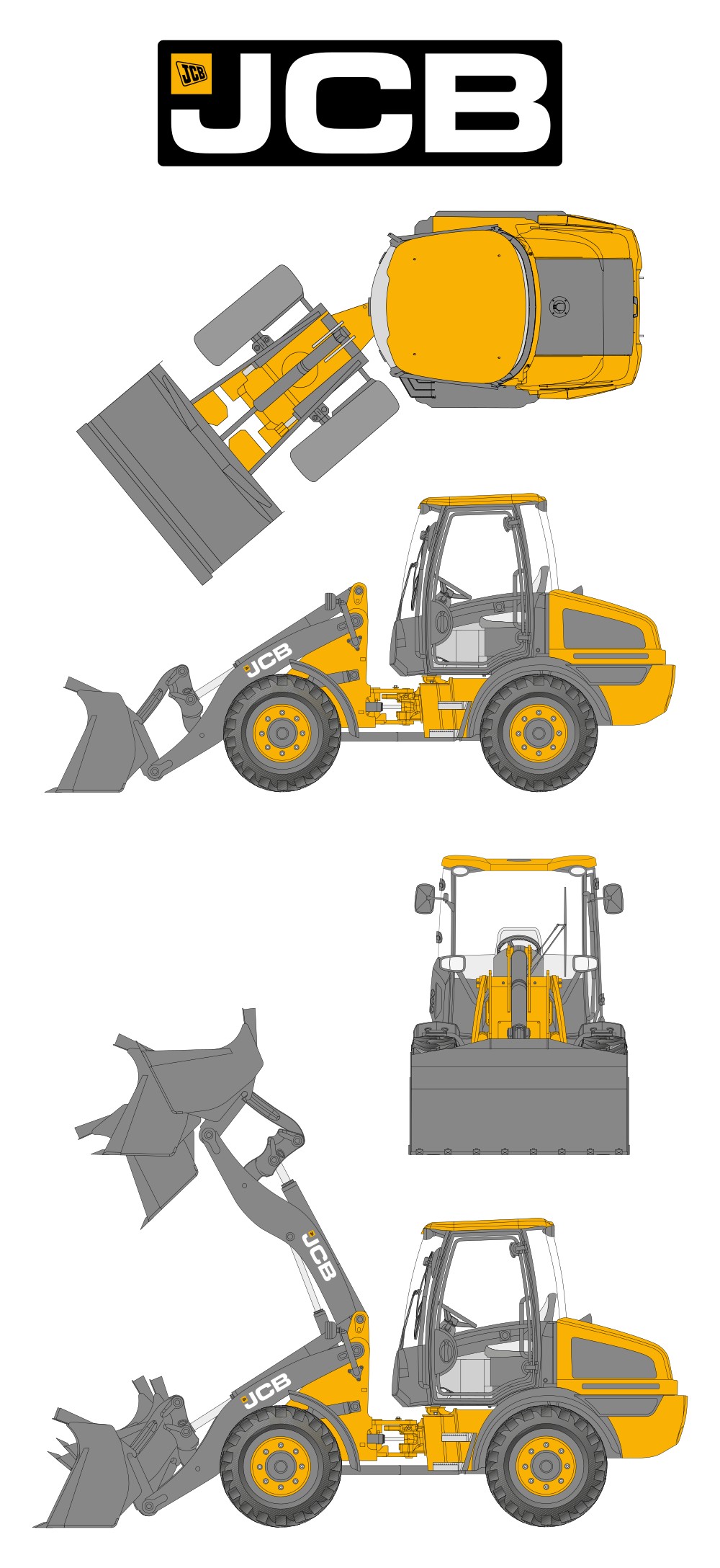 JCB 409 Wheel Loader Blueprint PDF SVG Vector Drawing.